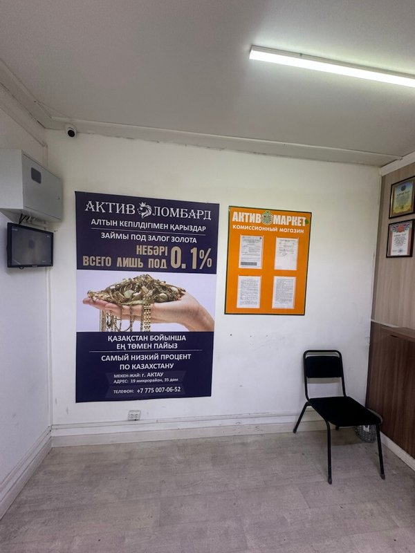 Актив Ломбард располагается по адресу Казахстан, Актау, 19-й микрорайон, 35.