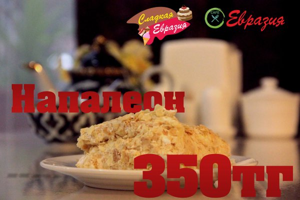Сладкая «Евразия» Самые вкусные тортики! НАШ САЙТ: eacafe.kz АДРЕС: Ул. Шернияза 68 г. Актобе ТЕЛЕФОН: 8 (7132) 210—615 8 (707) 7777 320