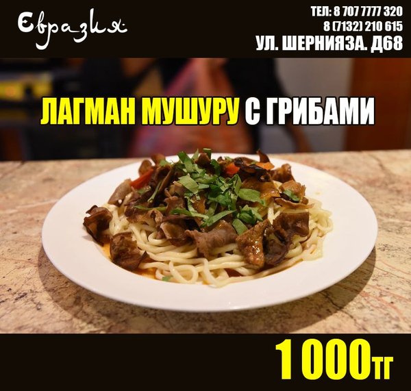 «Кафе Евразия» доставляет по городу Актобе в течение 1—2 часов. Мы готовим для Вас чисто и качественно!@cafeeurasia#cafeeurasia НАШ САЙТ: eacafe.kz Ул. Молдагуловой. А, 36/1, г. Актобе тел.: 8 (7132) 41-05-41 8 (747) 7777 321 Ул. Шернияза, 68, г. Актобе тел.: 8 (7132) 210—615 8 (707) 7777 320