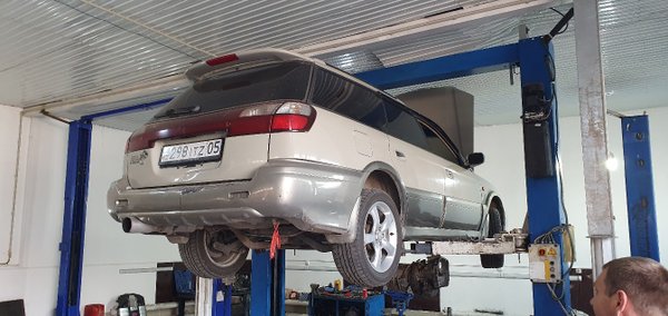 замена плавающего сайлентблока, замена передних приводов и стойки амортизатора. Так же заменили масло в ДВС и проинспектировали масло в редукторах. Наш автосервис предлагает вам полный спектр услуг по обслуживанию и ремонту автомобилей марки Subaru. Обслуживайтесь на правильном сервисе тел 87007005005 87077757557