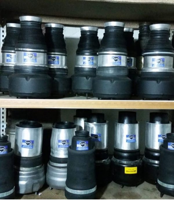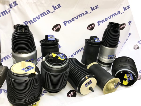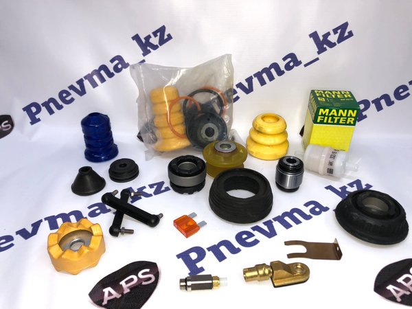 В наличии пневмоподушки, пневмоамортизаторы, компрессора, блоки клапанов, пыльники, сайлентблоки, редукционные клапаны, штуцера, крышки, сальники, клипсы и тяги датчиков положения кузова.