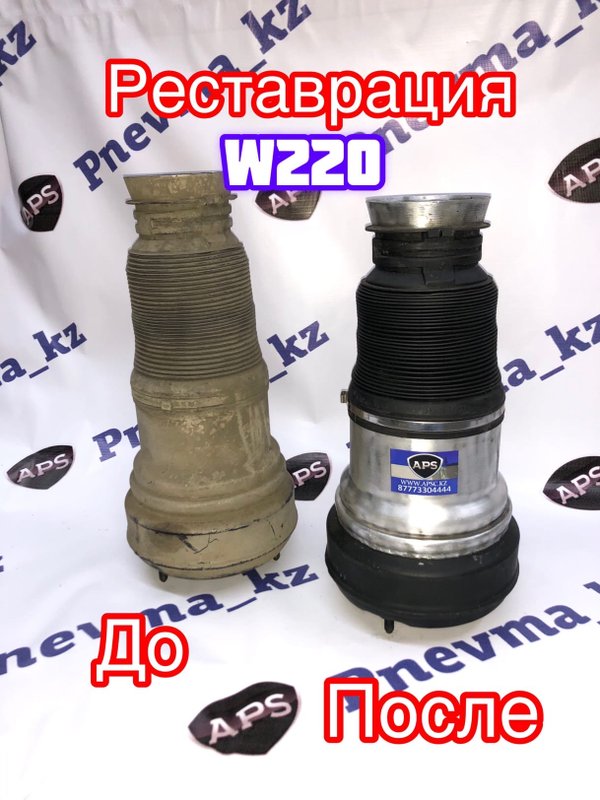 Реставрация пневмоподушки на W220 Передняя. Цена 55000 тенге. Даём 2 года гарантии. Что входит в ремонт: — замена пневмоэлемента на новый — усиленный корд (с двойной армированной оплеткой) — новые морозоустойчивые сальники — новый пыльник — новый опорный сайлентблок При ремонте мы используем морозоустойчивые комплектующие (сальники с повышенным содержанием углерода в резине) с температурой замерзания до -55°С.
