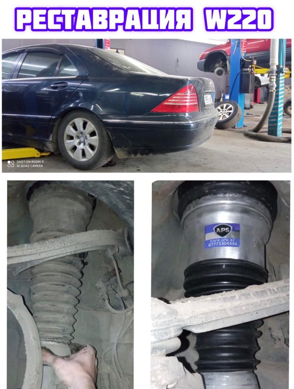 Заехал Мерседес W220 с проблемой, падает передняя часть автомобиля. Диагностика выявила, что пневмоподушка порвана. Мы Отреставрировали подушку, поставили усиленный рукав, заменили пыльник и установили новый опорный сайлентблок. Цена реставрации 55000 тенге и + 10000 тенге установка. Даём 2 года ГАРАНТИИ!