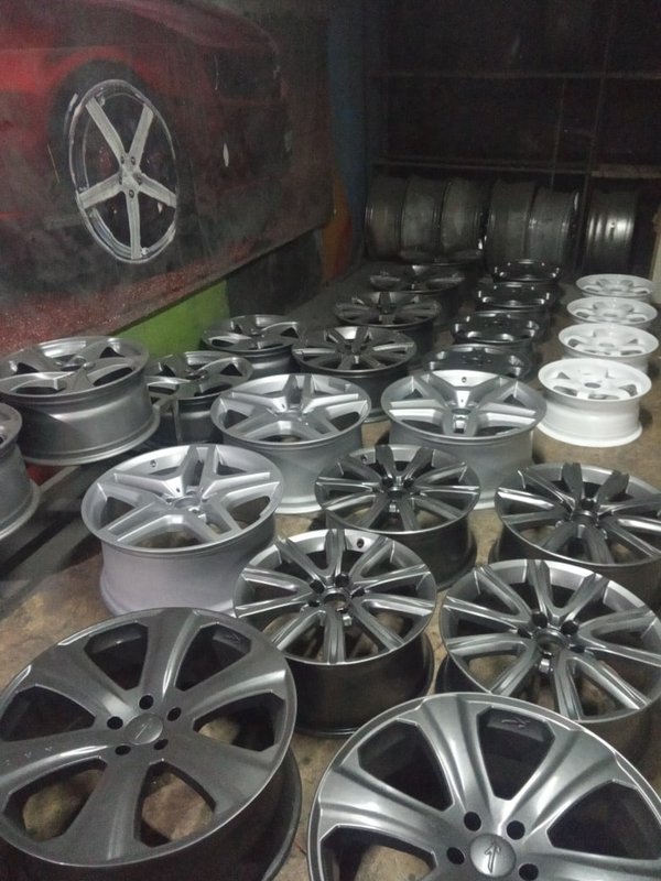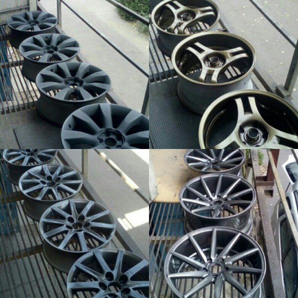 Очередной комплект в графите Порошково-полимерная покраска Пескоструйная очистка Прокат-правка на станке Аргонная сварка: трешины, бордюрка, сломаные куски Полировка полочек Изготовление разварок Шиномонтаж Все работы исполняются профессионально и с гарантией. Алматы Находимся по Ауэзова ниже Толе-би (на пешеходе заезд в ворота и прямо 200м. Виталий. Данил