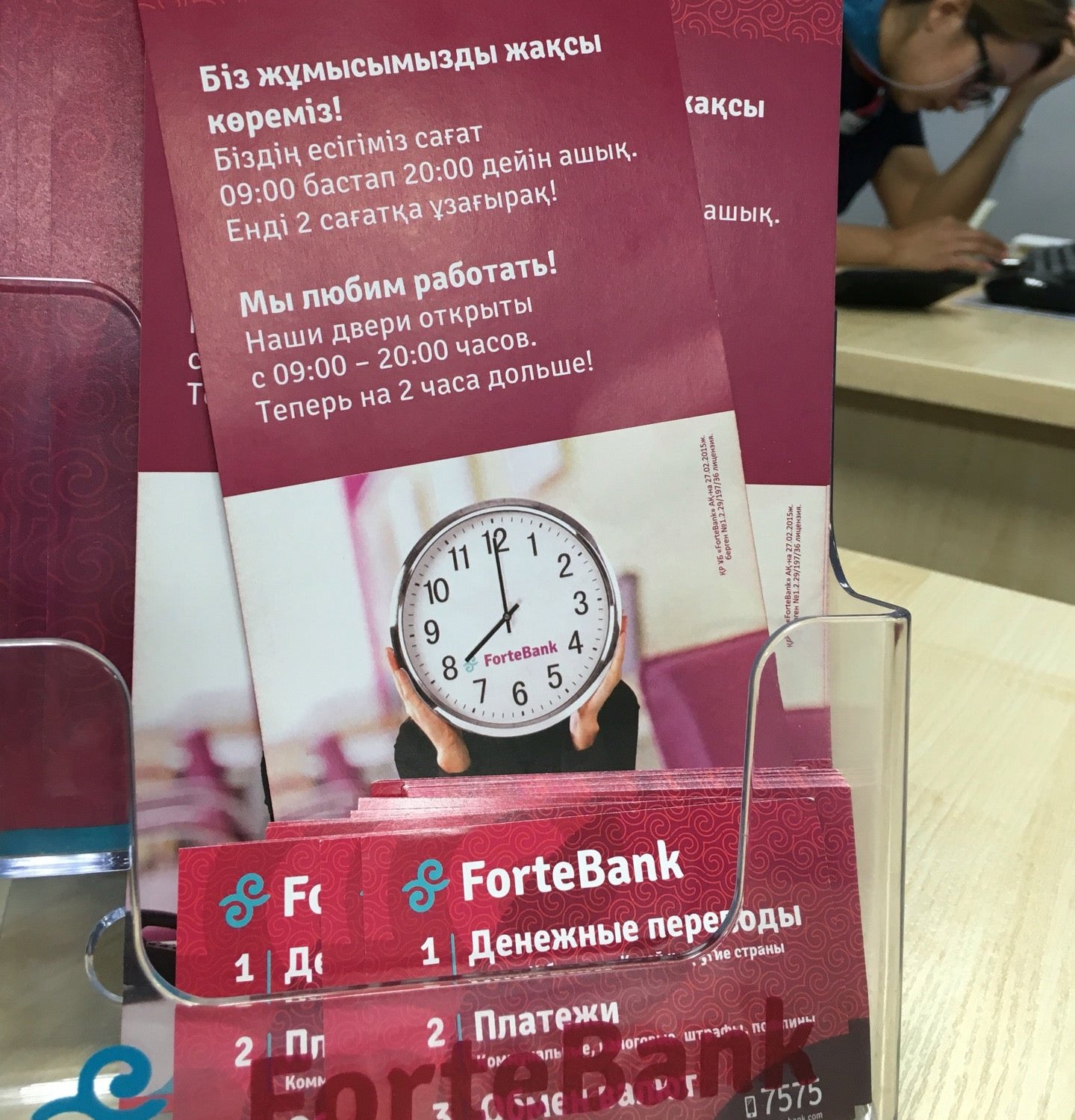 Сегодня -9октября оформляла кассовую операцию в банке Форте на Жибек жолы.Принимала Айгерим Жексембаева. Оформляла очень долго и все время с кем то разговаривала не по существу. (Раньше эту операцию делали в течении 2 мин.сегодня ушло около 10 мин.)