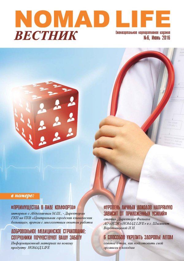 Сообщаем вам, что вышел очередной шестой номер нашего корпоративного журнала Вестник Nomad Life. АО «КСЖ „НОМАД LIFE“ запустило новый продукт — Добровольное медицинское страхование сотрудников, ему и посвящен текущий номер. В рубрике „Персона“ мы встретились с Главным врачом Центральной городской клинической больницы г. Алматы Абдуллаевым М.Ш. Из нашей беседы вы узнаете о том, как в лечебных учреждениях оказывают медицинские услуги при наличии или отсутствии полиса ДМС. В рубрике «Регион» статья-размышление от Директора Филиала… — Читать дальше