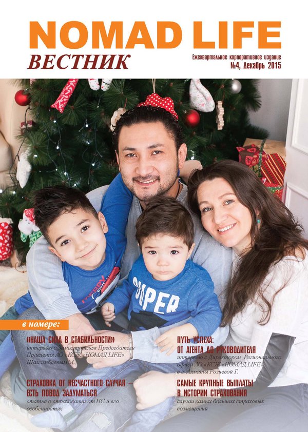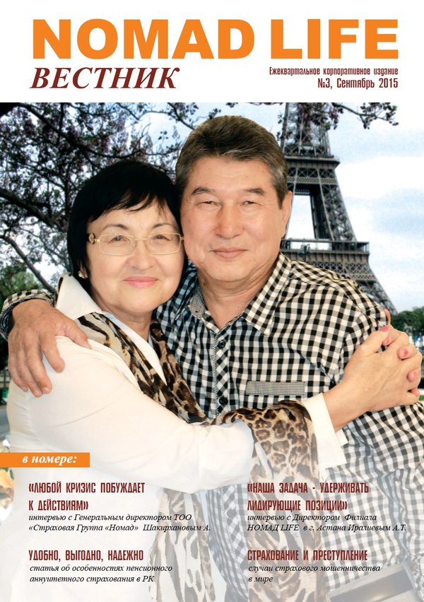 рике «Эксперт» читайте об особенностях клиентской поддержки в НОМАД LIFE, о которых расскажет Анастасия Малахова – Заместитель Директора Департамента сопровождения. В разделе «Вопрос-ответ» мы публикуем часто задаваемые вопросы наших клиентов, поступившие на наш корпоративный сайт, а в рубрике «На заметку» вы найдете материал о том, кому из нас необходимо страховать свою жизнь. Об истории страхования жизни и мошенничествах, сопровождавших его развитие, читайте в заключение нашего номера в разделе «Мир страхования». Надеемся, что мы поможем расширить ваше понимание о страховании жизни на страницах этого выпуска. Если у вас остались вопросы, на которые вы хотели бы получить ответы, просим присылать их в нашу редакцию на электронный почтовый ящик: marketing@nomadlife.kz или по почте по адресу: г. Алматы, Сатпаева 30А, корпус 1, 4 этаж. Желаем приятного и полезного чтения!