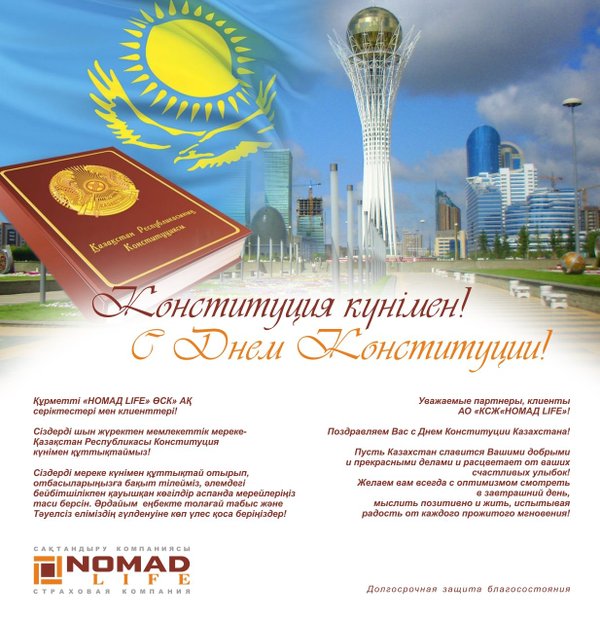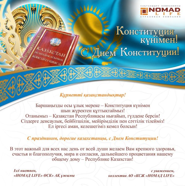 От всей души поздравляем Вас с Днем Конституции Республики Казахстан!