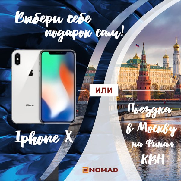 Выиграй iPhone X или поездку в Москву на финал лиги КВН! Если ты любишь КВН и следишь за каждым выступлением «Спарта Номад», у нас хорошие новости: мы разыгрываем iPhone X или поездку в Москву на финал лиги КВН! Что нужно? Подробная информация на нашей странице в Instagram: Следите за новостями! И пусть удача улыбнётся именно вам! Увидимся на финале лиги КВН в Москве!
