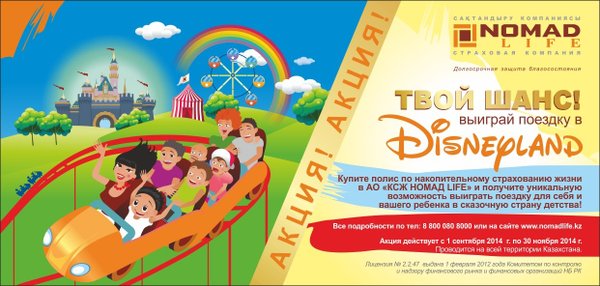 АО КСЖ НОМАД LIFE объявляет о завершении акции для своих клиентов по накопительному страхованию Твой шанс. Выиграй поездку в Диснейлэнд.