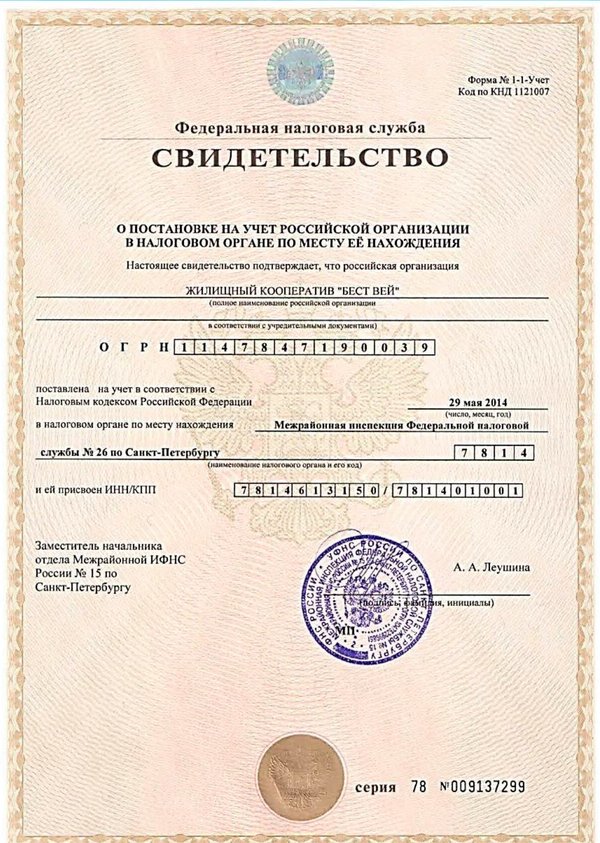 Свидетельство » О ПОСТАНОВКЕ НА УЧЕТ РОССИЙСКОЙ ОРГАНИЗАЦИИ В НАЛОГОВОМ ОРГАНЕ ПО МЕСТУ ЕЕ НАХОЖДЕНИЯ»