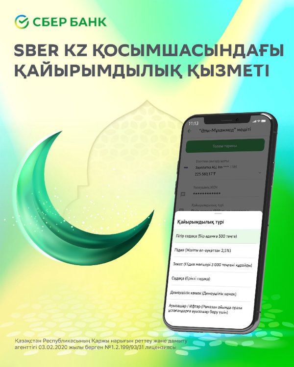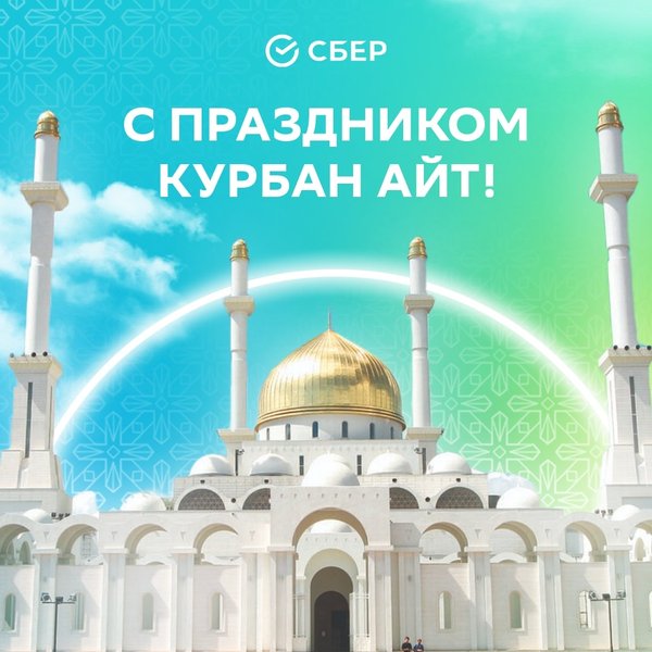Барша мұсылман қауымы үшін қасиетті саналатын Құрбан айт мерекесімен құттықтаймыз! Бұл мереке жақсылық пен мейірімділіктің белгісі. Құрбан айт сіздердің жүректеріңізге жарқын үміт ұялатып, ертеңгі күнге деген сенімдеріңізді нығайта түссін. Әр жанұяға зор денсаулық және бақ-береке тілейміз! ⠀ Махаббатпен, Сбер ⠀ Өзіңізге қолайлы болу үшін садақаны Sber KZ қосымшасында бір-екі рет басу арқылы бере аласыз.
