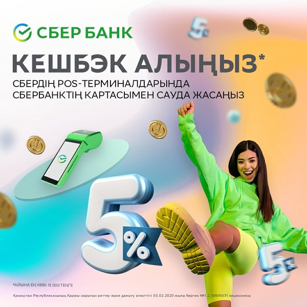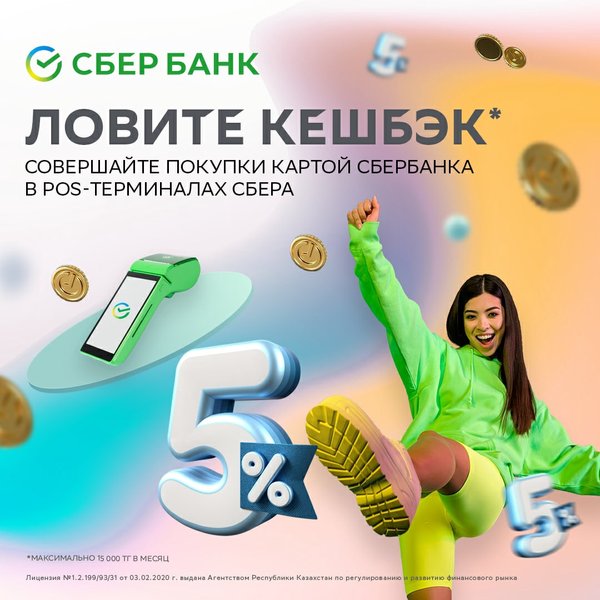 Кешбэк бұрынғыдан да көбейді! ⠀ Енді сіз СберБанктің POS-терминалдарында біздің карталарымызбен төлем жасаған кезде бақандай 5% аласыз ⠀ Тиімді сауда жасаңыз!