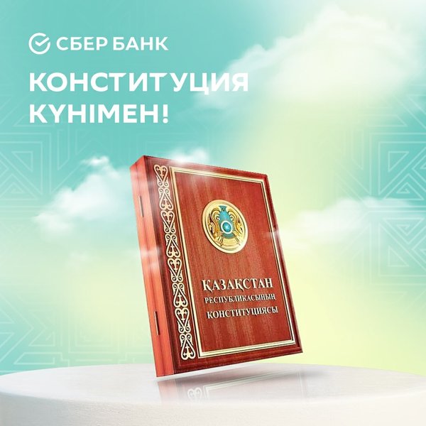 Құрметті қазақстандықтар, сіздерді Конституция Күнімен – еліміздің барлық азаматтары үшін айтулы мейраммен құттықтаймыз! ⠀ Конституция күні – бұл халқымыздың ерік-жігерін, оның демократиялық, зайырлы, құқықтық және әлеуметтік мемлекет ретінде нығаюға деген ұмтылысын айқындайтын мереке. ⠀ Әр отбасына құт-береке, зор денсаулық және ашық аспан тілейміз! ⠀ Шын жүректен, Сіздің СберБанкіңіз