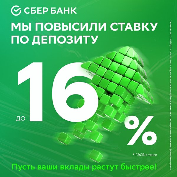 Тек осы күзде жылдық 16%-ға* дейінгі сыйақы мөлшерлемесімен онлайн депозит ашып үлгеріңіз! ⠀ Бізбен бірге ақша жинау тиімді! Сіздердің салымдарыңыз «Қазақстанның депозиттерге кепілдік беру қоры» АҚ-мен сақтандырылған! ⠀ *СЖТМ теңгеде