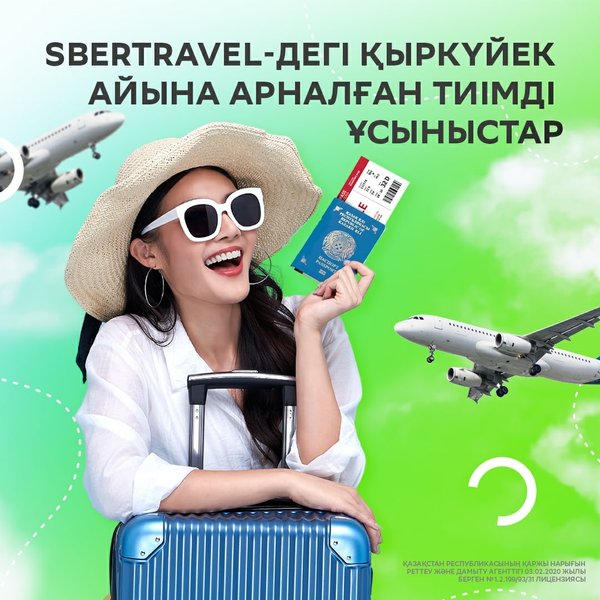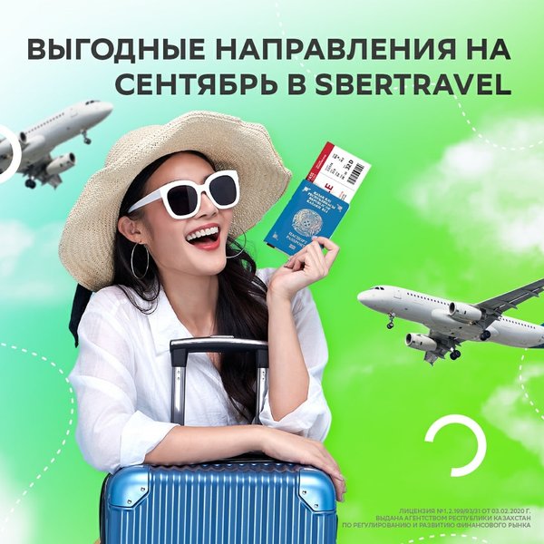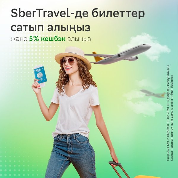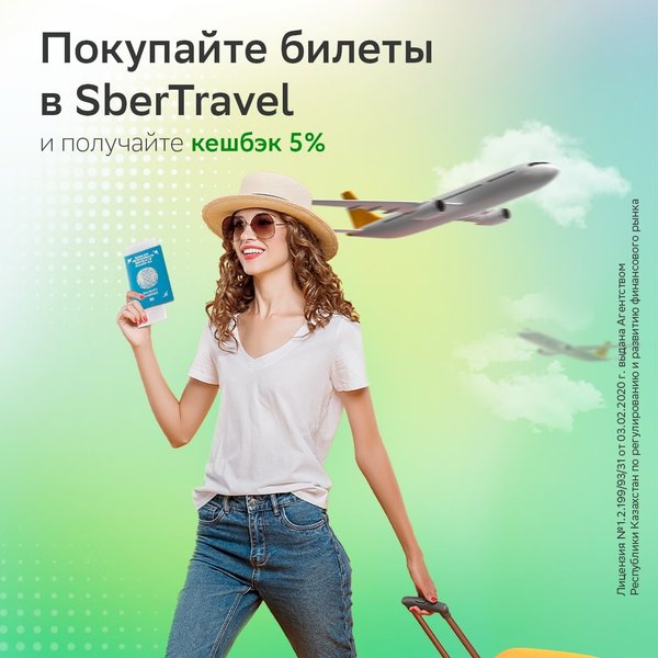 Сезон отпусков в самом разгаре и если вы ещё не купили билеты — пора это исправить ⠀ В приложении Sber KZ вас ждут более 60 направлений, без обязательного ПЦР-тестирования. Выбирайте направления в сервисе SberTravel, покупайте билеты, а с нас 5% кешбэк реальными деньгами! ⠀ Путешествовать со СберБанком — выгодно!