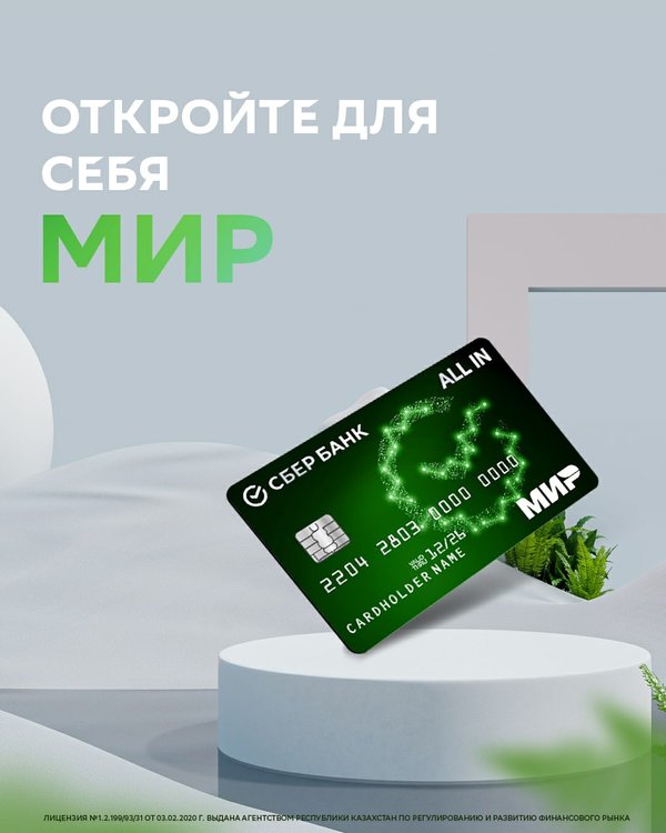 Уважаемые клиенты, рады сообщить вам о том, что мы запускаем дебетовую карту платежной системы МИР – МИР All In! ⠀ Благодаря этой карте вы можете совершать такие транзакции, как: ⠀ *снятие наличных до 500 000 тг в месяц без комиссии (в сети банкоматов СберБанка); ⠀ *кешбэк до 5% (в сети POS-терминалов СберБанка) и 1.5% (в сети терминалов других банков); ⠀ *совершать интернет-оплаты на сайтах поддерживающих ПС МИР; ⠀ *годовое обслуживание 0 тенге за 1-й год, 150 тенге в месяц за 2-й и последующие годы. ⠀ Карта функционирует на территории 12 стра… — Читать дальше