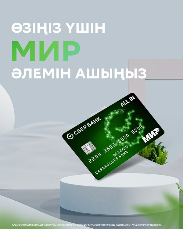 н. ⠀ Открыть карту можно в любом отделении банка и в приложении Sber KZ.