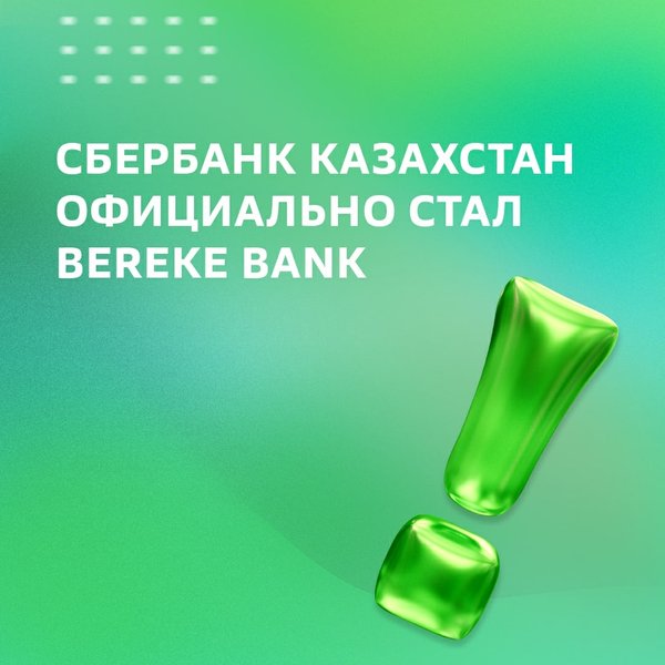Мы рады сообщить о том, что 14 сентября 2022 г. ДБ АО «Сбербанк» прошел государственную перерегистрацию с изменением наименования на Акционерное общество «Bereke Bank».