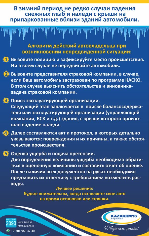 Доброе утро, друзья! Этот день обещает быть солнечным. СК Казахмыс желает вам удачного и плодотворного дня! А мы хотели бы вам напомнить что для большинства из нас автомобиль это больше, чем просто транспортное средство. Это олицетворение комфорта и семейного достатка, наше любимое детище. Купив однажды машину, мы уже не представляем свою жизнь без нее. Мы предлагаем Вам такие продукты страхования, как: обязательное страхование гражданско-правовой ответственности владельца транспортного средства и полис КАСКО. Вы с легкостью можете оформить ОГП… — Читать дальше