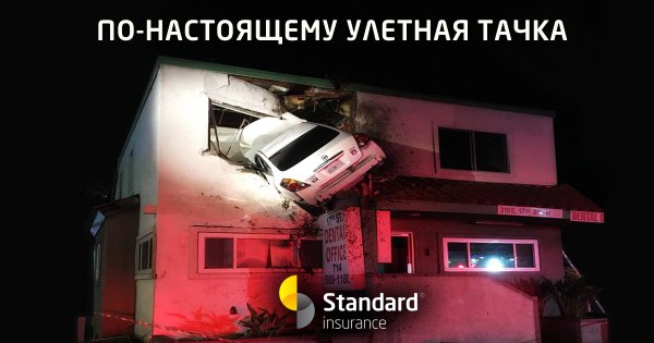 В Калифорнии машина подлетела на 18 метров на пустой дороге и врезалась в здание стоматологии. А ведь там температура +20! Вот и катай после этого по нашему гололеду и супер-морозу без страховки. Так что – оформите уже КАСКО от Standard Insurance! Всего от 50 000 тенге в год при страховой сумме покрытия в 5 000 000 тенге вы получите финансовую страховку на случай любого ДТП и бесплатную доставку полиса до двери. Сделайте это прямо сейчас по ссылке: Делайте репост, и пусть неожиданности в вашей жизни будут только приятными!