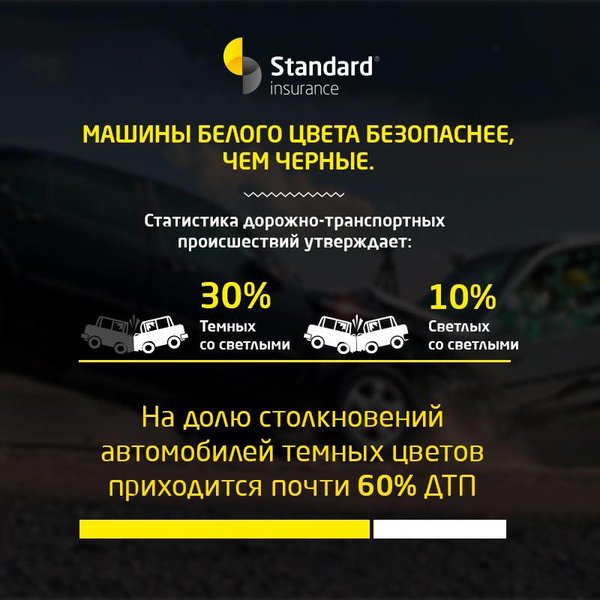 Важно понимать, что какого бы цвета не был ваш автомобиль, страхование – это самая надежная защита от ДТП. Особенно, с программами КАСКО от Standard Insurance на любой вкус и кошелек.
