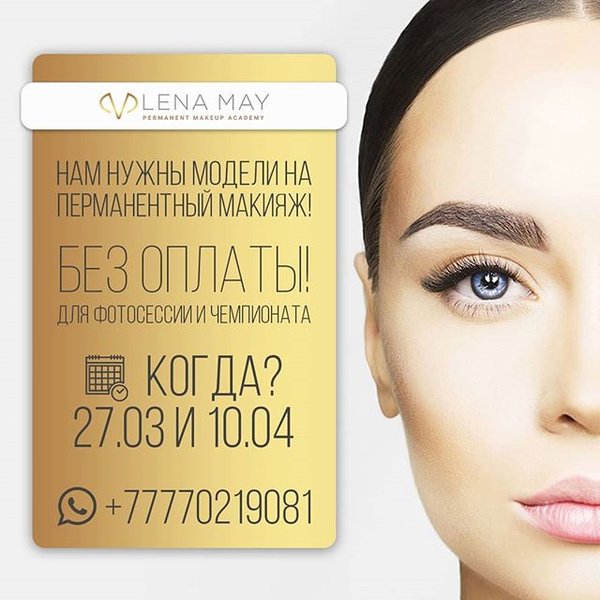 НАМ НУЖНЫ МОДЕЛИ ⠀ Девочки! В нашем центре 8,9,10 мая будет проходить повышение квалификации работающий мастер. Опыт работы 5 лет. ⠀ Ждём моделей на перманентный макияж бровей. Цена для модели 10.000 тг Технику мы обсуждаем непосредственно на мастер классе. ⠀ Количество мест ограничено. Запись ️ WhatsApp)