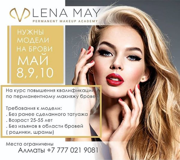 ияжу и микроблейдингу, сертифицированный тренер международного класса по перманентному макияжу; основатель Lena May permanent makeup academy в Казахстане и совладелец образовательного центра PM-Expert во Франции ⠀ И это всё для того, чтобы подарить нашим женщинам еще больше красоты ⠀ ️Лена Май лично принимает в Алматы весь июнь. Осталось несколько окошек на процедуру. ⠀ Запись на консультацию или процедуру WhatsApp) ⠀