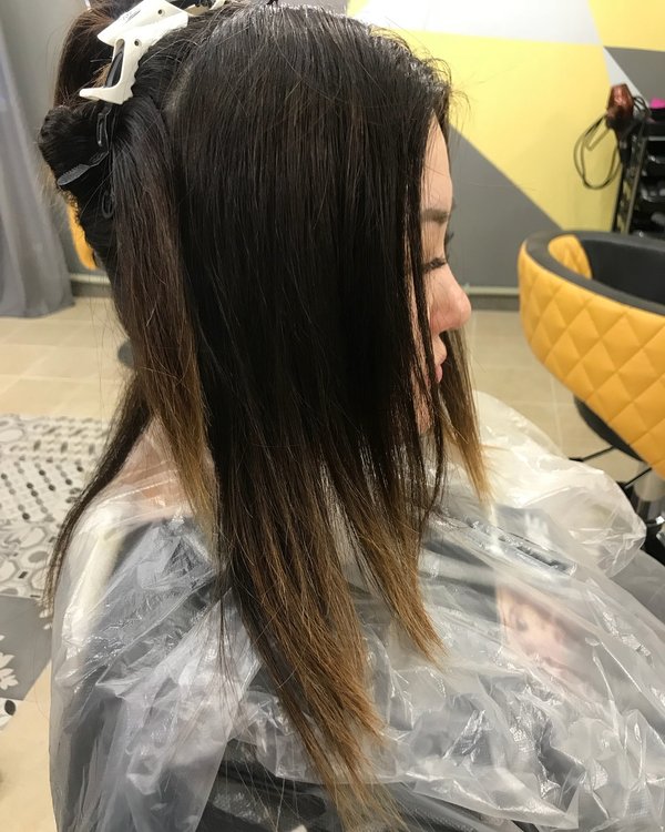 Sholpan Mamanova (14.06.2018): У нас прямо нашествие из девушек желающих стать светлее! Ещё один солдат армии блондиночек готов! Работа нашей ученицы — «Airtouch»!!! До этого у модели было отросшее омбре, очень желтое, наша ученица сделала все возможное чтобы исправить цвет и выдать хороший результат! Оцените работу ученицы, пишите в комментах своё мнение, мы будем признательны! #