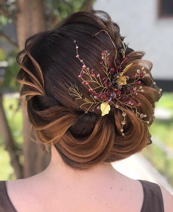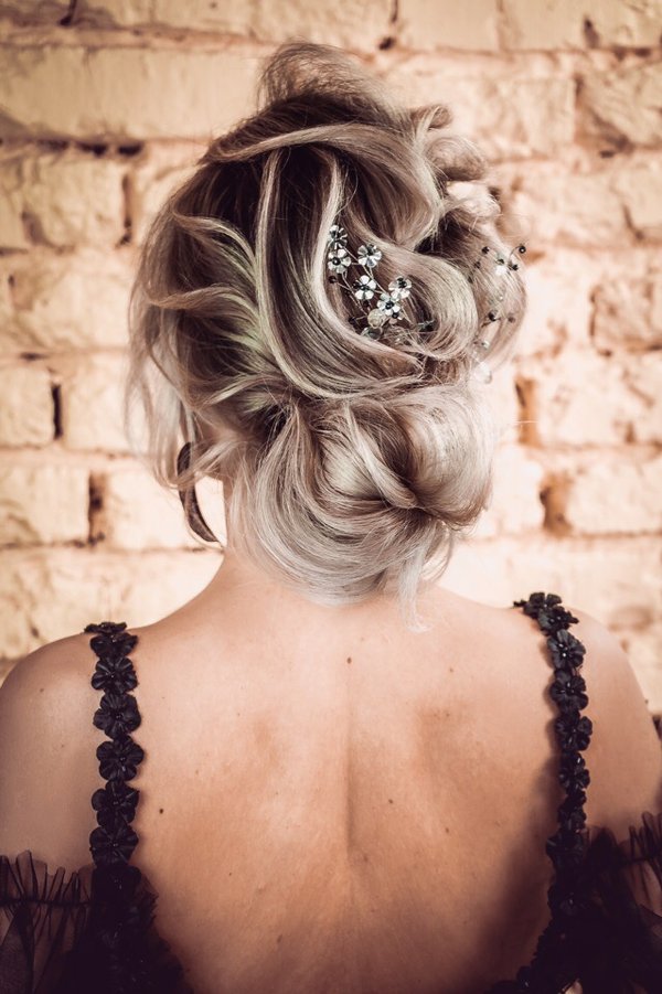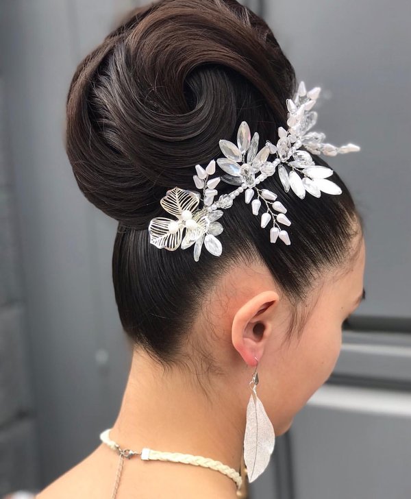 Работа выполнена нашим мастером-преподавателем, полнейшая импровизация и вдохновение! Шикарное сочетание классики и текстуры добавляет элемент лёгкости и нежности, а украшения подчеркивают индивидуальность и придают яркость образу модели! #