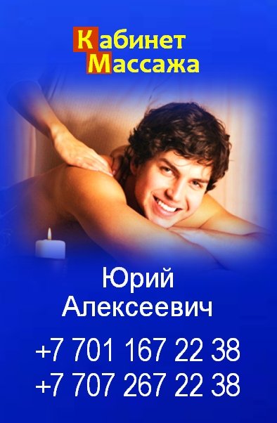 нге при покупке абонемента, подарочного сертификата или полной предоплате за курс: 10 — 15 процедур. — продолжительность одной процедуры: от 10 минут до 2х часов — предлагаемый курс массажа составляет: 10 15 процедур — стоимость одной процедуры: от 1 000 до 12 000 тенге Перечень предоставляемых нами услуг, процедур и видов массажа: — классический массаж — лечебный массаж — оздоровительный массаж — рефлекторно — сегментарный массаж — проводим процедуры по коррекции фигуры — полный массаж (оздоровительный — 90 минут — 9000 тенге) — общий массаж (оздоровительный — 60 минут — 6000 тенге) — массаж спины (оздоровительный — 40 минут — 4000 тенге) — массаж спины (комплексный лечебный — 60 мин. — 6000 тенге) — профилактический массаж — антицеллюлитный массаж — баночный массаж — массаж головы (комплексный — 10 минут — 1000 тенге) — массаж шеи и надплечий — массаж рук — массаж воротниковой зоны — 30 минут — 3000 тенге — массаж пояснично — крестцовой зоны — массаж ног — рефлекторный массаж стоп (Foot massage) — разучиваем лечебные физические упражнения (Л.Ф.К.) — консультация по вопросам здоровья, рекомендации для дальнейшего лечения. Консультация и запись на массаж по телефонам: Юрий Алексеевич) Маргарита Владимировна) Адрес нашего кабинета массажа: г. Алматы, Жибек Жолы 126 А (уг.ул. Сейфуллина). Салон красоты «BYLGARI» Больше информации: Будем рады любым комментариям и замечаниям с Вашей стороны!