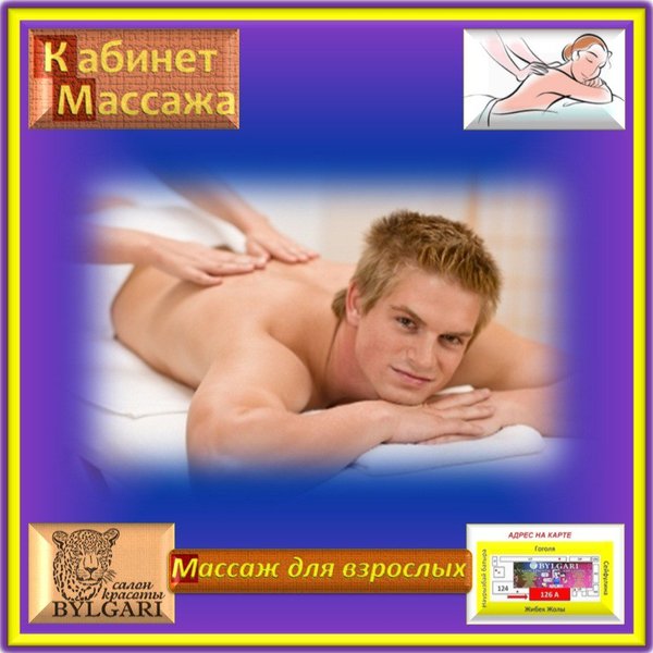 ость — миозит — мышечные атрофии — радикулит — нарушение осанки — протрузии — сколиоз — кифоз — невралгия — дисковые межпозвонковые грыжи — остеохондроз Наши преимущества: — большой опыт работы и без преувеличения профессионализм — чистый, оборудованный всем необходимым и приятный кабинет для проведения массажа в центре города Алматы. — приятная, расслабляющая музыка во время процедуры. — скидка 10000 тенге при покупке абонемента, подарочного сертификата или полной предоплате за курс: 10 — 15 процедур. — продолжительность одной процедуры: от 10 минут до 2х часов — предлагаемый курс массажа составляет: 10 15 процедур — стоимость одной процедуры: от 1 000 до 12 000 тенге Перечень предоставляемых нами услуг, процедур и видов массажей: — классический массаж — лечебный массаж — оздоровительный массаж — проводим процедуры по коррекции фигуры — полный массаж (оздоровительный — 90 минут — 9000 тенге) — общий массаж (оздоровительный — 60 минут — 6000 тенге) — массаж спины (оздоровительный — 40 минут — 4000 тенге) — массаж спины (комплексный лечебный — 60 мин. — 6000 тенге) — профилактический массаж — антицеллюлитный массаж — баночный массаж — массаж головы (комплексный — 10 минут — 1000 тенге) — массаж шеи и надплечий — массаж рук — массаж воротниковой зоны — 30 минут — 3000 тенге — массаж поясничнокресцовой зоны — массаж ног — разучиваем лечебные физические упражнения (Л.Ф.К.) — консультация по вопросам здоровья, рекомендации для дальнейшего лечения. Консультация и запись на массаж по телефонам: Юрий Алексеевич) Маргарита Владимировна) Адрес нашего кабинета массажа: г. Алматы, Жибек Жолы 126 А (уг.ул. Сейфуллина). Салон красоты «BYLGARI» Больше информации: Будем рады любым комментариям и замечаниям с Вашей стороны!
