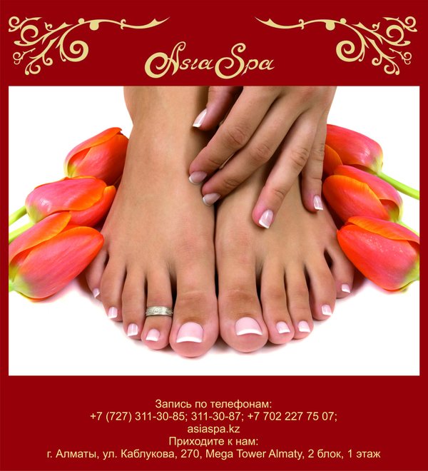 предупреждать, чем лечить. Наши специалисты, с помощью продукции известного американского бренда GESSICA, помогут Вам не только поддерживать, но и сохранить Ваши ноги в красоте и здоровье. *** Запись по телефонам:, 311-30-87 Заходите на наш сайт: asiaspa.kz Приходите к нам: г. Алматы, ул. Каблукова, 270, Mega Tower Almaty, 2 блок, 1 этаж