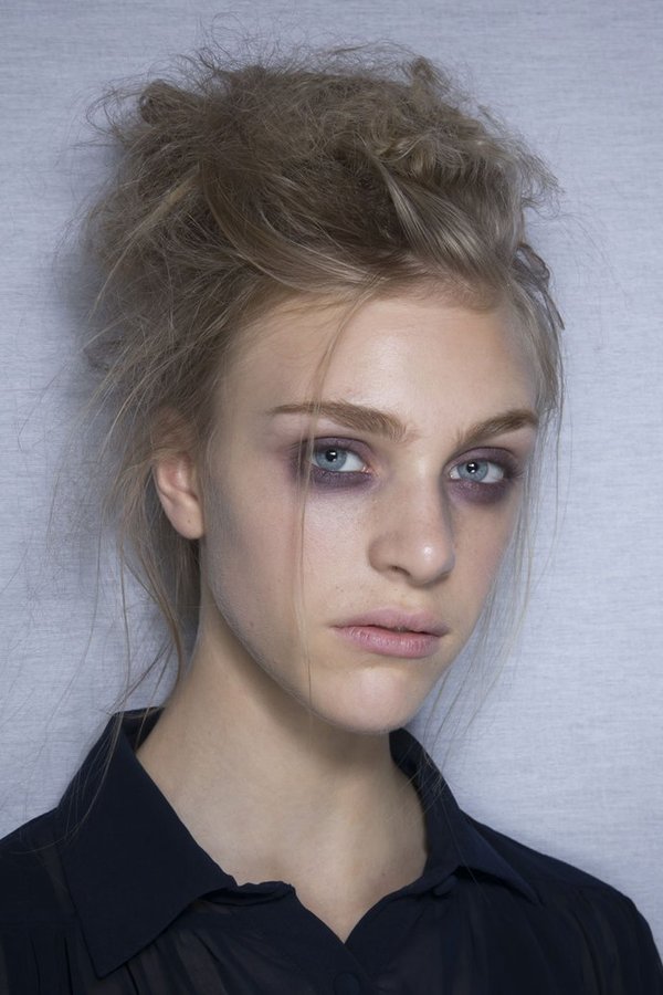 Еще одна модная прическа весна-лето 2014 и еще один вариант беспорядка на голове (на это раз в романтичном стиле) — расслабленный пучок. Скрутите волосы в узел, закрепите на затылке и оставьте как есть все волоски, пряди и «петухи», которые обычно приглаживаете. Словно растрепанные сильным ветром укладки продемонстрировали 3.1 Phillip Lim, Peter Som, Tom Ford, Nicole Miller, Rochas, Giambattista Valli, одна другой лучше.