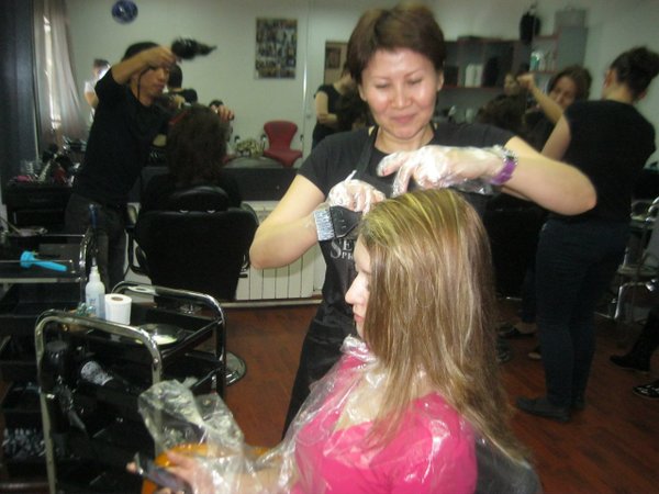 Укладку Салтанат сделала у нашего ведущего стилиста Рахимы Хасановой