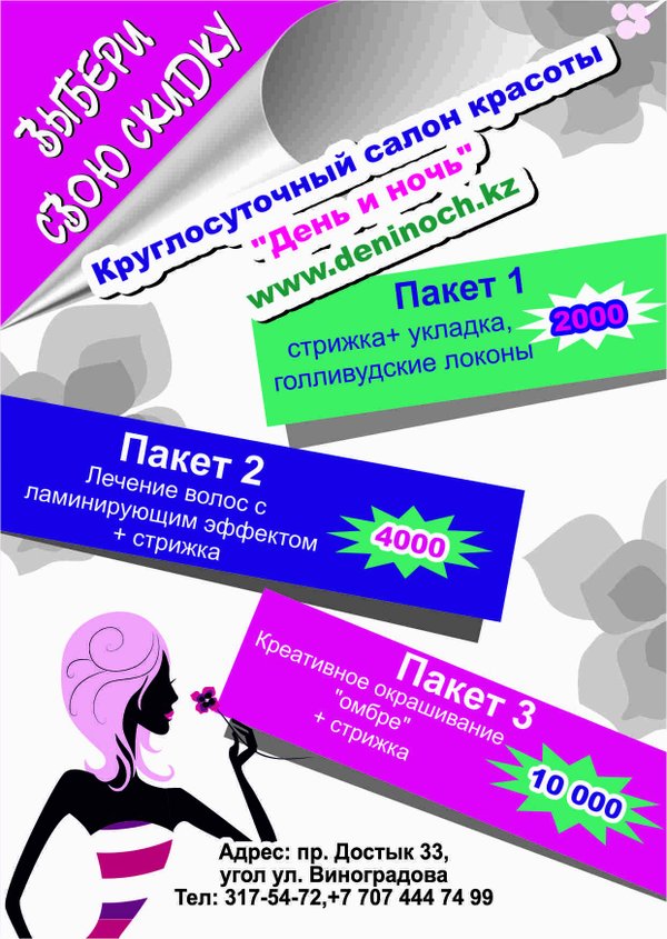 Снижение цен в вечернее и ночное время. В священный месяц Рамадан. Удобный график работы. В предверии священного месяца Рамадан круглосуточный салон красоты «День и Ночь» делает снижение цен!!! С 28 го июня салон работает по старым ценам и в ночное время. Для всех,кто держит пост и их близких принять услуги в вечернее и ночное время очень удобно и комфортно.В это время сохраняется дневной тариф. Мы обещаем домашнюю обстановка и чистоту,удобное для Вас время и приятное общение. пр. Достык, 33 офис 8 (угол ул. Виноградова)