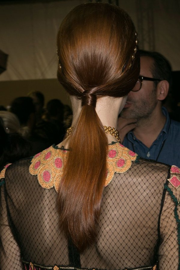 Волосы, собранные в хвост у основания затылка или — если позволяет длина — ниже плеч, были представлены на подиумах всех четырех столиц моды. Попробуйте новые варианты: с кожаными аксессуарами (Helmut Lang), заправленный под платок (Haider Ackermann) или накладной (Missomi). Разумеется, и здесь не обошлось без «немытых» и «нечесаных» волос: текстурированные хвосты показали Derek Lam и Edun. На контрасте с ними аккуратные, гладкие и сияющие Jason Wu, Valentino, DKNY и Altuzarra выглядели сдержанно и гламурно.