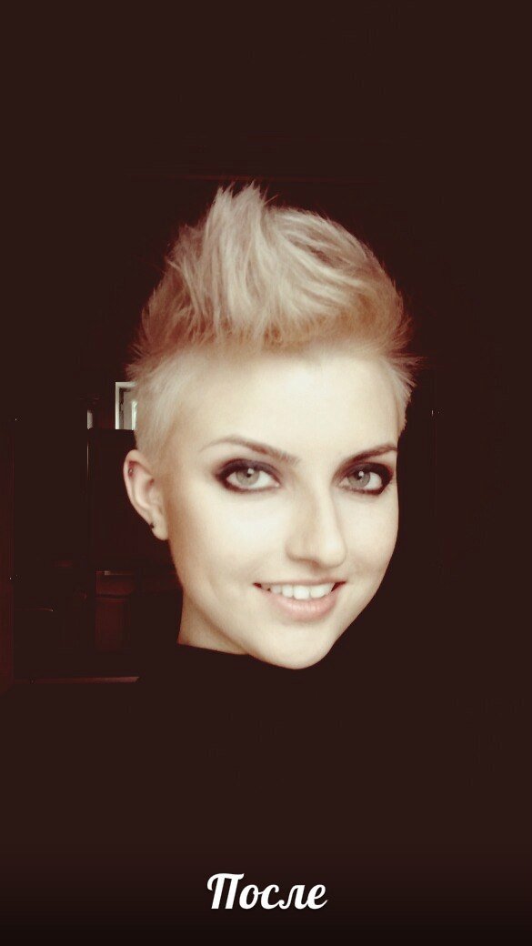 Яркая,креативная стрижка, на коротком волосе, с укладкой, устремлённой вверх создаёт идеальную форму головы и воздушный объем