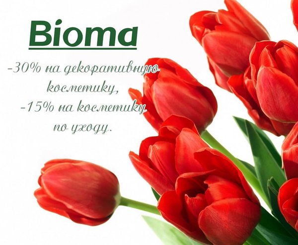 С наступающим милые дамы ️ В честь праздника 8 марта, мы делаем скидку -30% на декоративную косметику и -15% на косметику по уходу. Акция продлится с 7 по 20 марта. --------------------------------------- Товары с уже существующей скидкой в акции не участвуют. --------------------------------------- @ Студия красоты Bioma