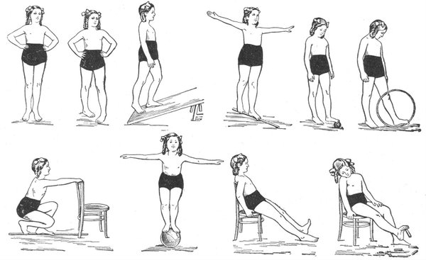 выполнение упражнений, разработанных для лечения плоскостопия. Все упражнения комплекса следует выполнять утром, пока мышцы ног не утомлены, а связки – не закрепощены. Каждое упражнение делается по 10—12 раз. Дыхание при этом произвольное. 1. Исходное положение – сидя на стуле, ноги стоят на полу на ширине ступни. Необходимо попеременно сгибать и разгибать пальцы ног. 2. Исходное положение – сидя на стуле, сгибать и разгибать всю стопу. 3. Исходное положение – стоя на твердом полу, переносить вес тела с наружного на внутренний край стопы. 4. Исходное положение – сидя на стуле, стопы плотно прижаты к полу. Нужно попеременно поднимать большой палец левой и правой ноги вверх, оставляя остальные четыре пальца прижатыми к полу. 5. Исходное положение – сидя на стуле. Стопы стоят на полу, пятки прикасаются друг к другу, носки разведены в противоположные стороны. Необходимо поднимать носок то одной, то другой ноги, удерживая пятку на полу. 6. Исходное положение – сидя на стуле. Нужно провести пальцами правой ноги по голеностопу левой ноги, коснувшись колена. После этого то же самое выполняется на другую сторону. 7. То же самое, но пальцы ног при этом удерживают лоскуток ткани. 8. Исходное положение – сидя на стуле. Пятки прижаты к полу, носки обеих ног попеременно сходятся и расходятся, рисуя полукруг. 9. Исходное положение – сидя на стуле. Упереться нижней фалангой пальцев ног в пол, плавно перенести часть веса тела на них, вернуться в И.п. По мере укрепления стопы усиливать давление на пальцы. 10. Исходное положение – стоя на одной ноге, поставить стопу второй на мяч. Нужно катать его, не отрывая стопы опорной ноги от пола. Сделав необходимое количество повторений, проделать то же самое на другую ногу. 11. Исходное положение – сидя на стуле. Поднимать мяч с пола, удерживая его внутренней поверхностью обеих стоп. 12. Исходное положение – сидя на стуле, собирать пальцами ног рассыпанные на полу пуговицы. С течением времени следует использовать пуговицы меньшего размера. 13. Исходное положение – сидя на стуле, катать по полу палку, наступив на нее ногами. 14. Исходное положение – стоя, ноги находятся на ширине ступни. Нужно плавно подниматься и опускаться на носках. 15. Исходное положение – приседания. Пятки ног не отрывать от пола. 16. Ходьба на месте. При этом нужно периодически наступать средней частью стопы на скалку, лежащую на полу Выполняя эти простые и не энергоемкие упражнения, можно избавиться от плоскостопия на начальной стадии. Однако нужно помнить, что этот комплекс не может заменить аэробных и силовых нагрузок, поэтому отказываться от спортзала нельзя. Это особенно актуально для людей среднего возраста, ведь они вследствие малоподвижного образа жизни набирают избыточный вес, что провоцирует развитие плоскостопия (смотри подробнее). Конечно, тренировки (особенно на начальном этапе) должны быть сбалансированными, строиться по индивидуальным программам, быть регулярными и проводиться на фоне соблюдения режима питания.