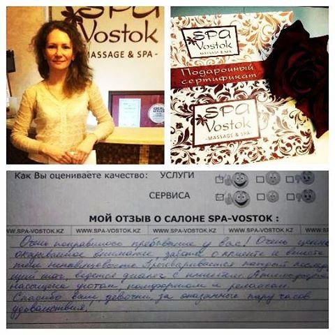 Наталья Ермакова (28.01.2016): Мы глазами наших Гостей! @Regrann from @mariyasennikova — spavostok Хочу выразить огромную благодарность самому лучшему спа ВЫ очень крутые, и это здорово, что вы есть и доставляете людям такое несравненное удовольствие, я бы сказала райское наслаждение. У вас погружаешься в сказочный мир релакса и расслабления. Спасибо вам всем за вашу работу и внимание к клиентам, а особенно самому лучшему мастеру своего дела Елене #Regrann @ Спа-салон «SPA-Vostok»