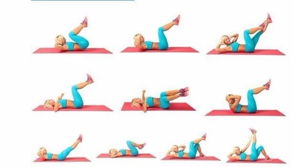 дняться выше, но живот при этом надувается, остановитесь, подтяните его сильнее, сделайте вдох и с выдохом поднимитесь выше, контролируя плоский живот в области пупка и нижней части живота. Движение должно происходить усилиями мышц живота, а не за счет вытяжения шеи, поэтому следите, чтобы она не была напряжена, и раскрывайте локти в стороны. Повторите 16 раз. 2. Диагональные скручивания Исходное положение. Лягте на спину, сложите руки за головой. Ноги поднимите перпендикулярно полу и согните в коленях под прямым углом (положение тэйбл топ), положите ладони за голову и приподнимите лопатки над полом. Вытяните шею, не перенапрягайте ее. Как выполнять. На выдохе скрутите корпус, потянитесь левым локтем к правому колену, а левой ногой, выпрямляя ее, вперед в диагональ. На вдохе вернитесь в исходное положение и, не опуская корпус, повторите скручивание в другую сторону. В течение всего упражнения тяните пупок к позвоночнику, удерживайте плоский живот. Не отрывайте поясницу и таз от пола, скручивайтесь от нижнего ребра, а не от талии. Повторите по 8 раз в каждую сторону. 3. Отведение ног в сторону из положения тэйбл топ Исходное положение. Лягте на спину, положите руки в стороны, поднимите предплечья перпендикулярно полу и упритесь локтями в пол. Ноги в положении тэйбл топ. Как выполнять. На выдохе, не меняя угол в коленях, опустите ноги в сторону до положения, в котором лопатки будут все еще прижаты к полу. Сохраняйте плоский живот, втягивайте его еще сильнее. На вдохе вернитесь в исходное положение и повторите в другую сторону. Если на первых порах будет сложно удерживать равновесие, начните выполнять упражнение с небольшой амплитудой, контролируя движение мышцами живота, а затем увеличьте ее и сильнее упирайтесь локтями живот при этом должен нести основную нагрузку. Повторите в другую сторону. Выполните по 8 раз в каждую сторону. После этого упражнения опустите ноги на пол и немного отдохните. 4. Раскрытие локтей и выпрямление ног одновременно Исходное положение. Лягте на спину, положите руки за голову, направив локти вперед, ноги в положении тэйбл топ. Приподнимите корпус, не отрывая от пола поясницу. Как выполнять. На выдохе выпрямите ноги, вытягивая их вперед и вверх под углом примерно 45—60 градусов к полу, и одновременно раскройте локти, направив их в стороны. На вдохе вернитесь в исходное положение, не опуская корпус и ноги. Вытягивая ноги, следите, чтобы поясница не прогибалась: сильнее прижимайте ее от пола, втягивая мышцы живота. Между полом и поясницей не должно быть никакого расстояния это обезопасит спину от перенапряжения. Раскрывая локти, опускайте плечи и вытягивайте мышцы шеи. Не спешите сразу опустить ноги низко, для начала прочувствуйте движение с высоким подъемом ног, главная задача сохранить плоский живот. Повторите 8 раз. 5. Вытяжение за рукой к стопе Исходное положение. Лягте на спину, положите руки за голову, согните ноги в коленях и поставьте стопу левой ноги на пол, а правую поднимите до параллели голени с полом. Приподнимите корпус и развернитесь вправо, поясница на полу. Как выполнять. На выдохе выпрямите правую ногу в колене и одновременно потянитесь левой рукой к правой стопе. На вдохе вернитесь в исходное положение, не опуская корпус. Выполните по 8 раз в каждую сторону.