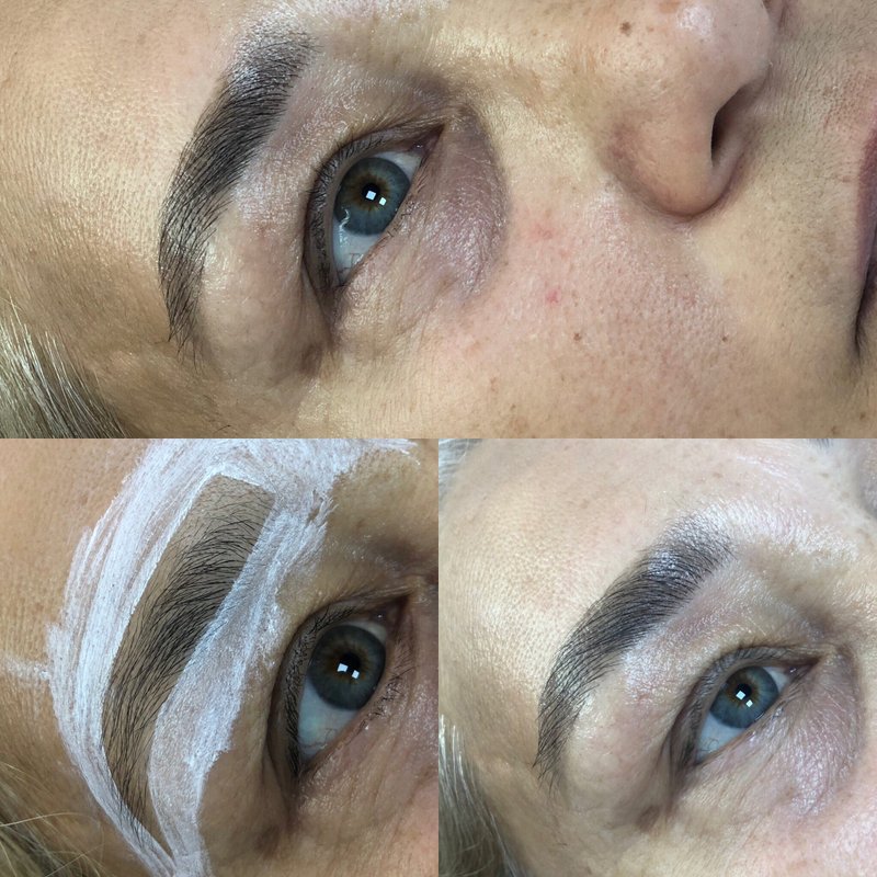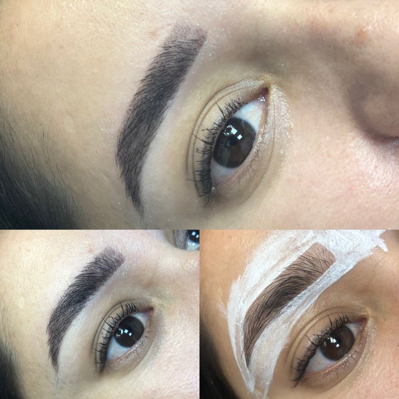 Сотрудники студии красоты Sevara beauty studio делают коррекцию и окрашивание бровей.