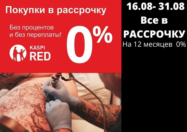 Напоминаю всем о Акции от нашего партнера Все услуги в нашей студии в Рассрочку на срок до одного года без% Максимальная сумма Рассрочки 1 000 000 тенге. Художественное тату (любой сложности) Перманентный макияж (всех зон) Курсы «Мастер Художественной татуировки» Курсы «Мастер по Перманентному макияжу» Курсы «Специалист full-пигментирование»