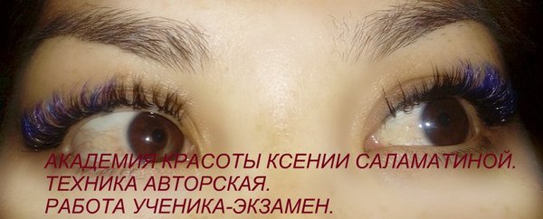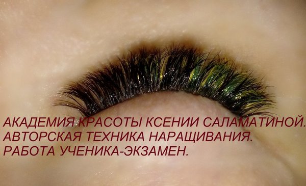 Ксения Саламатина (10.09.2016): В нашей академии разрабатываются новинки по наращиванию ресниц. Новые технические методики позволят Вам достичь совершенства в креативном наращивании. На фотографии представлена экзаменационная работы ученика. В ближайшее время мы выставим новинки по новым принтам.