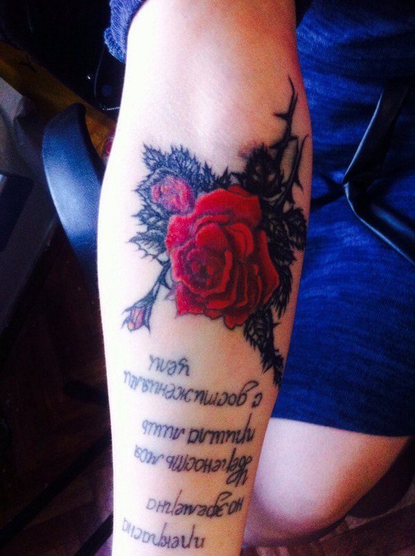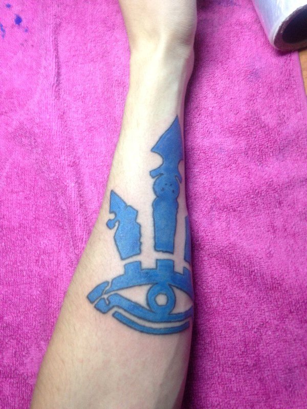Вроде такая небольшая работа, а все таки есть и смысл и изюминка. И весь смысл сокрыт в этой фразе. Правда каждый как всегда трактует все по своему. А по поводу изюминки, вы же видите странный цвет кажется, что баловались ручкой. Как ни странно, но это было желание клиента, он хотел набить тату так, чтобы это было похоже на чернила шариковой ручки. Обычно в школе мы рисовали ручкой под видом тату, а теперь мы делаем тату под вид ручки. Я надеюсь смешать цвета получилось удачно. Не забудьте поставить лайк, это помогает нам становится лучше