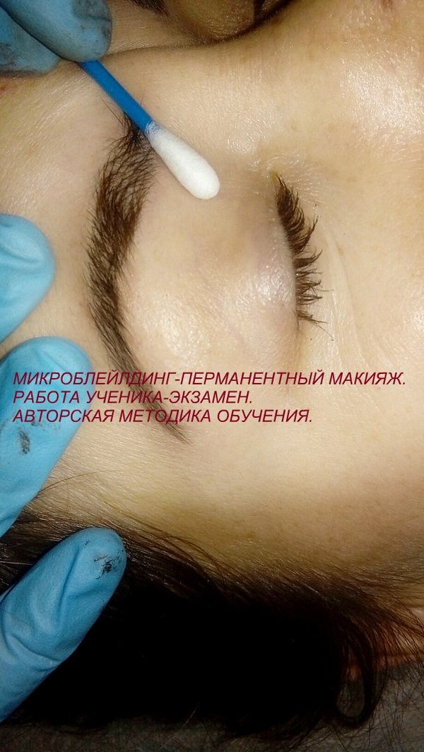 ЭКЗАМЕНАЦИОННАЯ РАБОТА УЧЕНИКА ПО МАНУАЛЬНОЙ ТЕХНИКЕ«МИКРОБЛЕЙДИНГ» ВЫПОЛНЕНА СВЕТЛЫМ ПИГМЕНТОМ, ТАК КАК МОДЕЛЬ ПОЖИЛОГО ВОЗРАСТА И БОЛЕЕ НАСЫЩЕННЫЕ ЦВЕТА ВЫГЛЯДЕЛИ БЫ НЕ КОРРЕКТНО ЕЕ ВОЗРАСТУ. ЖЕНЩИНЕ 78 ЛЕТ ПОЭТОМУ РЕКОМЕНДУЮТСЯ БОЛЕЕ СВЕТЛЫЕ ОТТЕНКИ, ЧТОБЫ НЕ ПЕРЕГРУЖАТЬ ЛИЦО И НЕ УТЯЖЕЛЯТЬ ВЗГЛЯД. УЧЕНИК ВЫПОЛНИЛ РАБОТУ БЕЗУПРЕЧНО С УЧЕТОМ СЛАБОГО ТУРГОРА ДЕРМЫ.