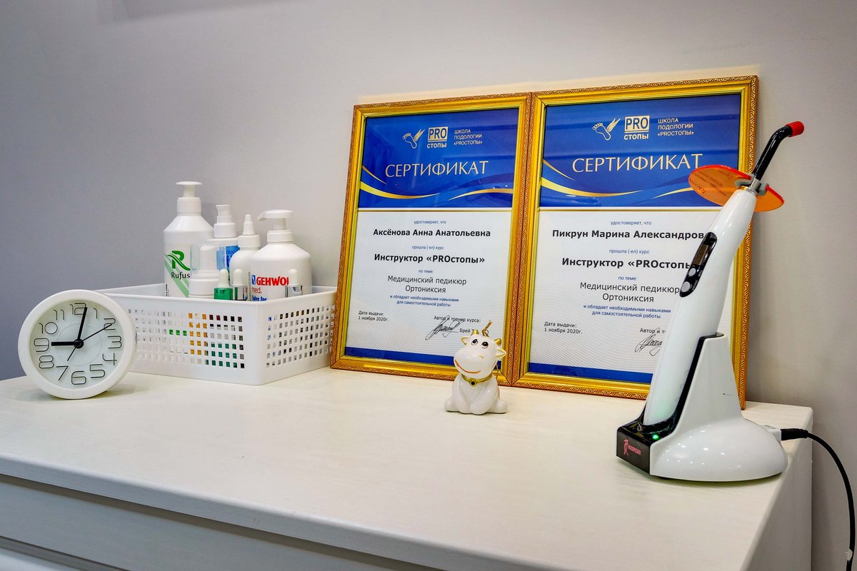 Все специалисты-подологи прошли обучение у признанных преподавателей немецкой, российской и украинской педикюрной отрасли. Стаж — от 10 лет. Благодаря этому они помогают даже в самых запущенных случаях, когда, казалось бы, выход только один — обратиться к хирургу.