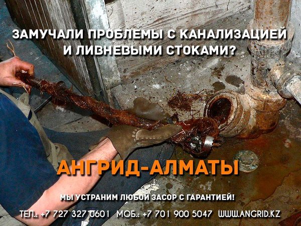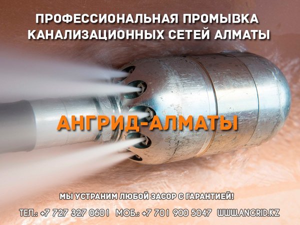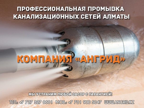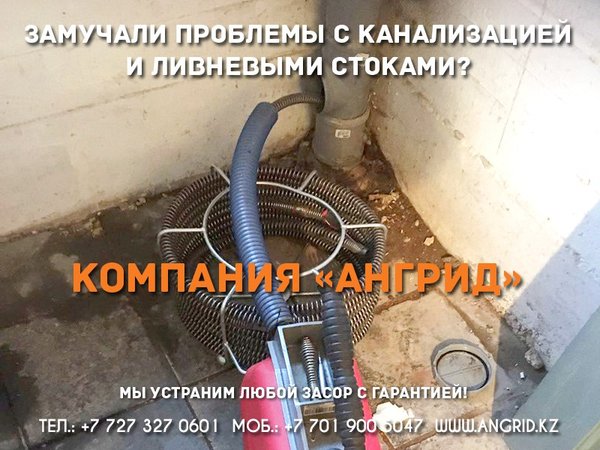 Компания «АнГрид» рада приветствовать Вас на страничке нашей группы в социальной сети «Вконтакте»! Надеемся что у нас Вам будет интересно. Тут мы планируем размещать самую полезную информацию о наших услугах, новинках и многом другом, что касается прочистки канализационных систем и сточных труб. Также будем рады видеть Вас на нашем официальном сайте: — аварийная сантехническая служба прочистки канализации в Алматы.