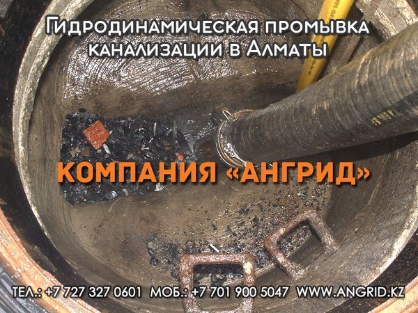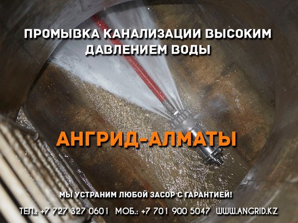 дленно сливается, есть присутствие неприятных запахов, то это первые звоночки, что вам требуется заказать прочистку канализации. Служба «АнГрид» работает в Алматы и Алматинской Области с 2010 года. Мы обеспечиваем качественную своевременную промывку и продувку труб канализации от заторов и отложений.